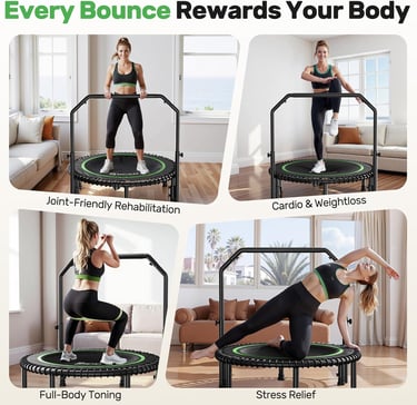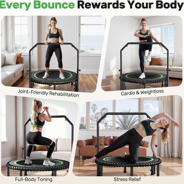 Boost cardio, burn calories fast, and reduce joint impact with a rebounder.